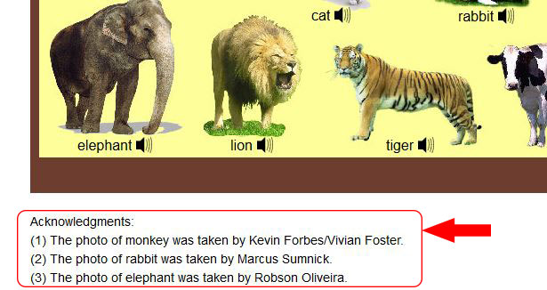 Use the Appendix to put any extra information you might have, such as a copyright statement, acknowledgment, or notice about an image used in the word set. Figure 13 gives you an example of how to show an acknowledgment.