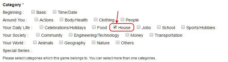 Each word set must be allocated a main category. This is determined by the content topic covered. For this tutorial please select “House”.